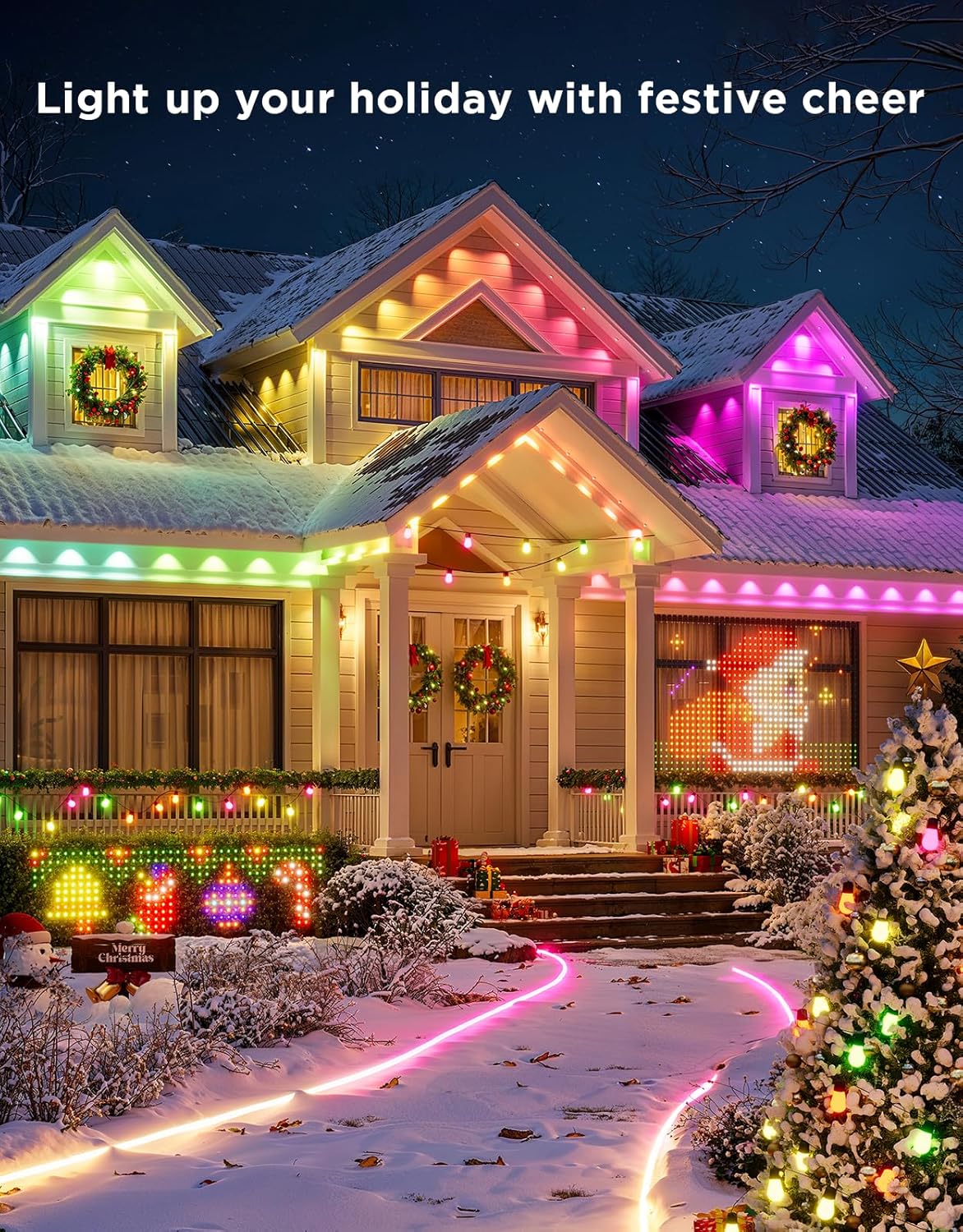 Upgrade your home’s exterior with Govee RGBIC Permanent Outdoor Lights, a fully smart, weatherproof lighting system that works seamlessly with Google Home and Alexa. Create stunning color effects, set voice-activated lighting routines, or switch to clean white architectural lighting—all from your phone or with simple voice commands.